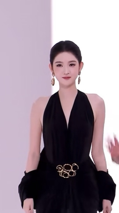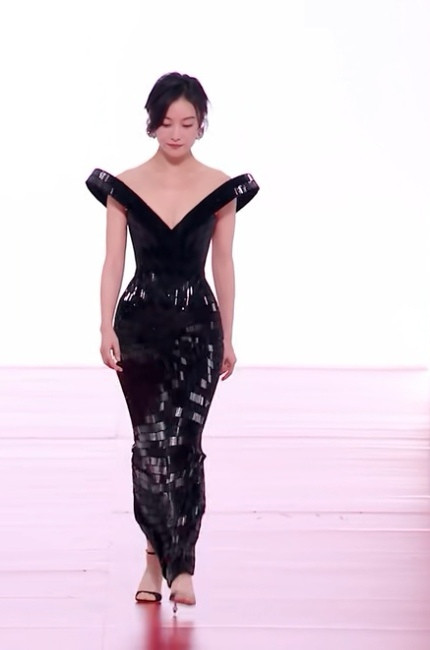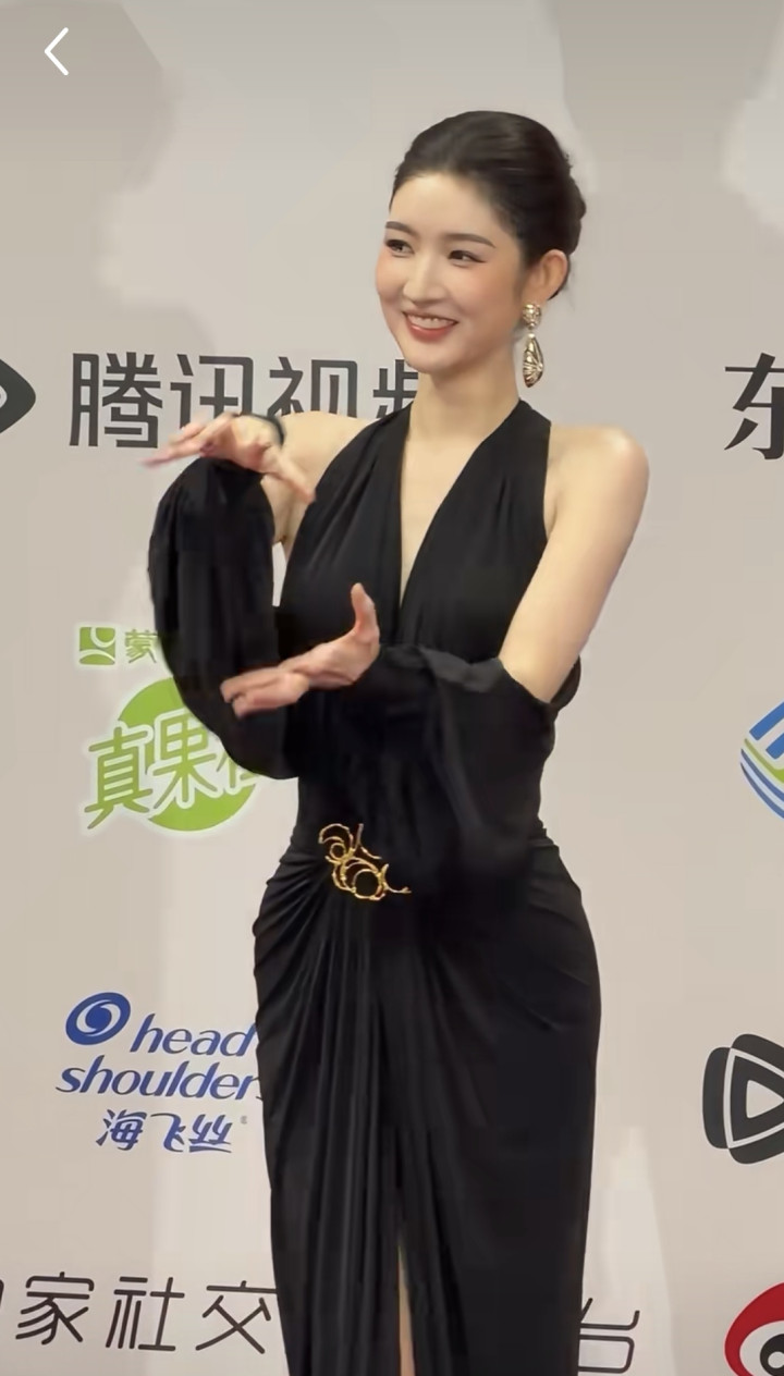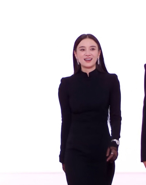 王玉雯这套黑色礼服显得她像铅笔一样挺拔纤细。