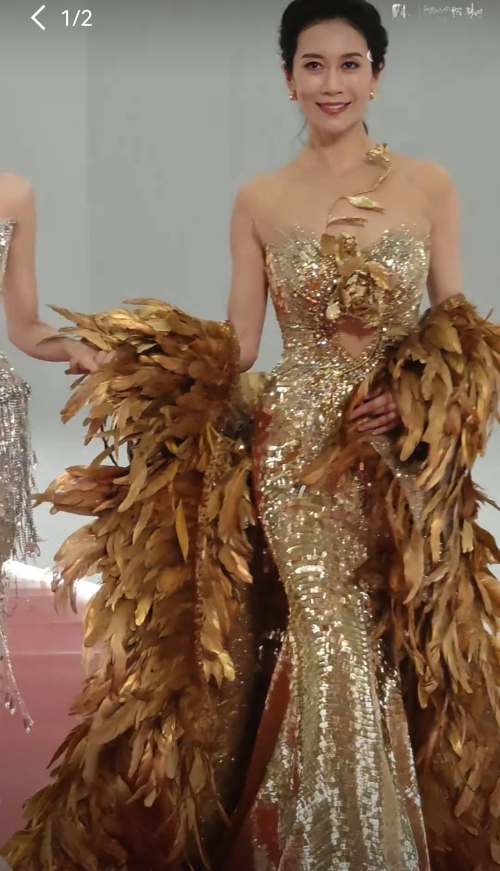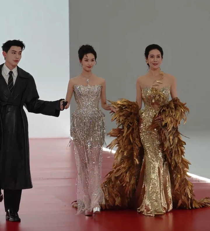 可能两个人的礼服太重了,特别是温峥嵘的,像是把秋天的落叶都粘在身上了。