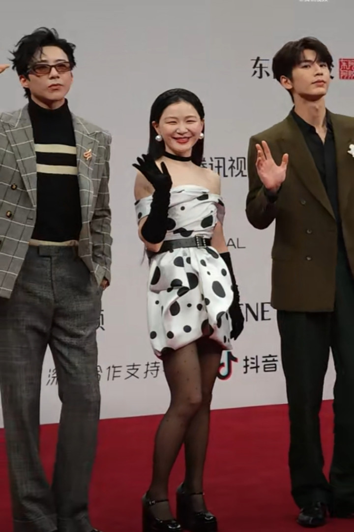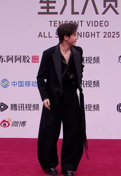 刘宇宁本身在身高上就很有优势,于是全套的格纹也丝毫不会显得他矮小,反而灰褐色的西裤让他在红毯上更加显眼,显得腿又细又长。