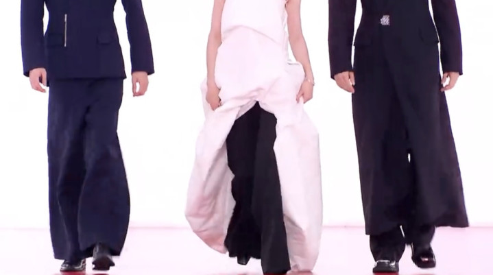 裤装风格急转,大阔腿裤还有两根绳子,王安宇你下半身是要打篮球吗?这么飘逸。